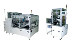 プリフォーム連続ピン端子挿入システムとプリフォーム連続タブ端子挿入システムがあり、どちらもプリント基板やボビンなど成形品に端子を直接挿入するシステムです。