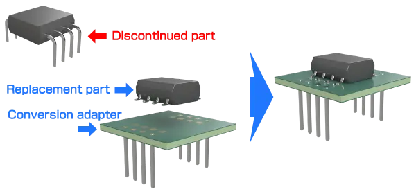 - We provide adapters that use terminals and printed circuit boards to convert the pitch, arrangement, SMD, and lead pins of electronic components.